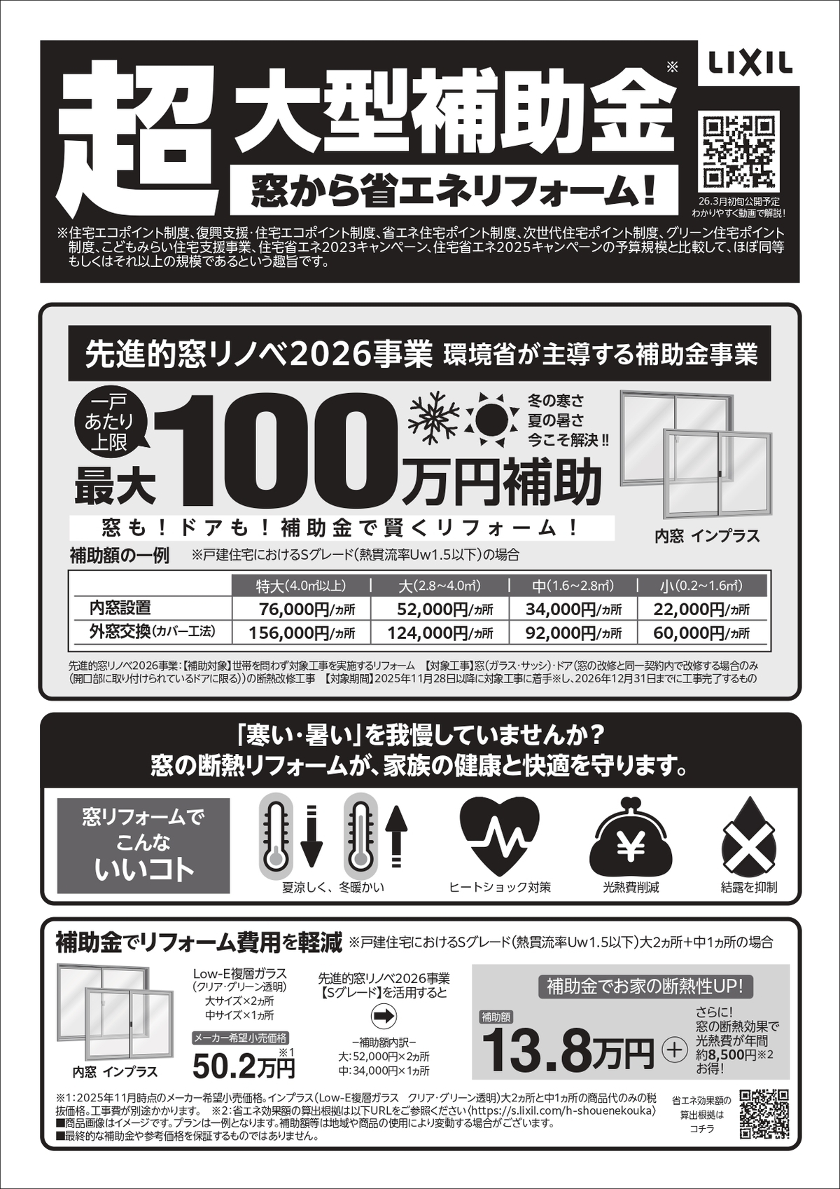 内窓「インプラス」は、優れた断熱性能で、暖房効果が抜群です。防音効果もあります。結露が軽減します。スピード施工可能です。