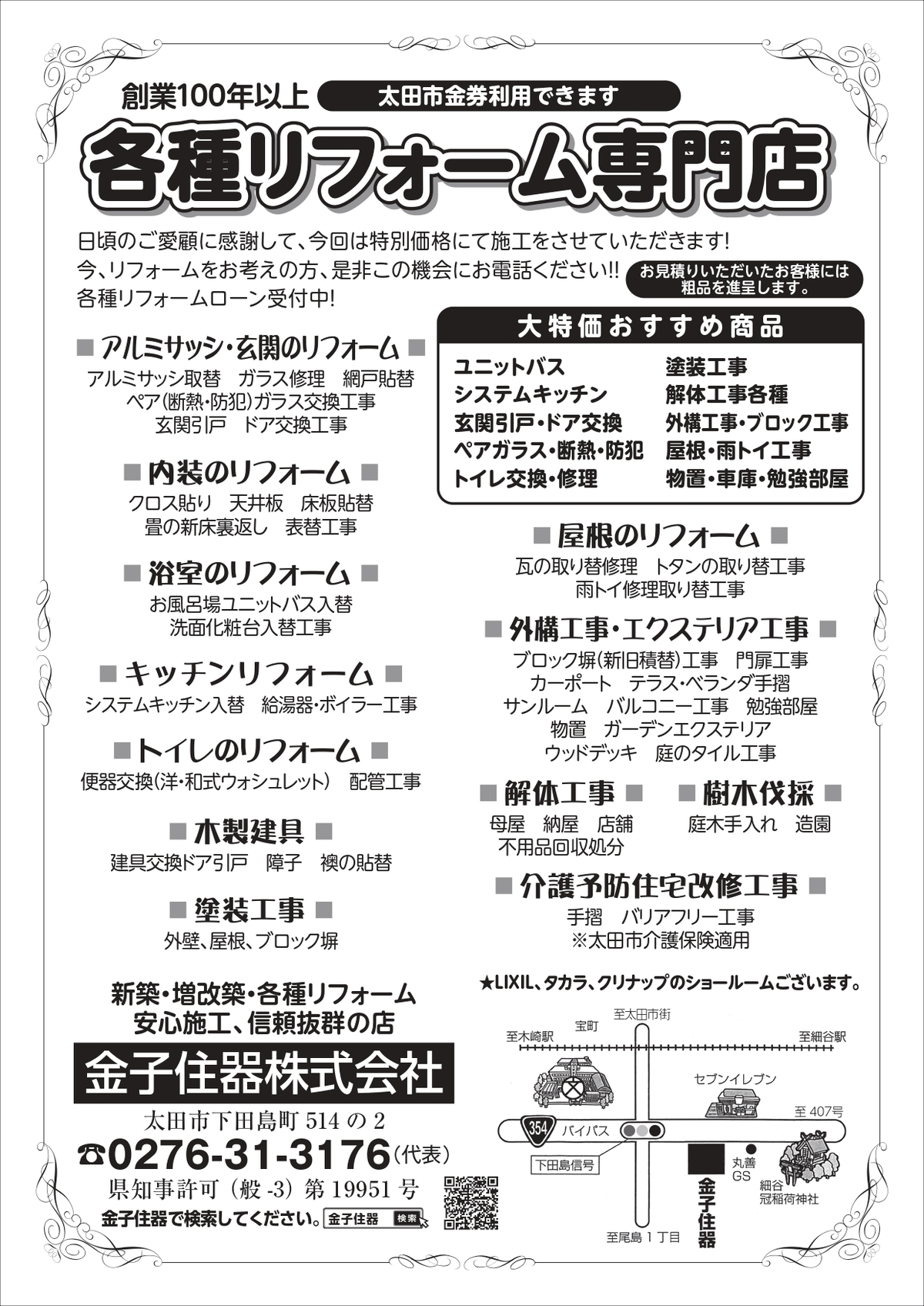 太田市でリフォームなら、創業100年を超える金子住器株式会社へお任せください。